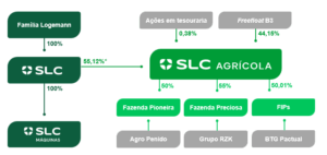 *55,12% = 49,64% SLC Participações S.A. + 5,39% Acordo de Acionistas + 0,09%  Pessoas ligadas
